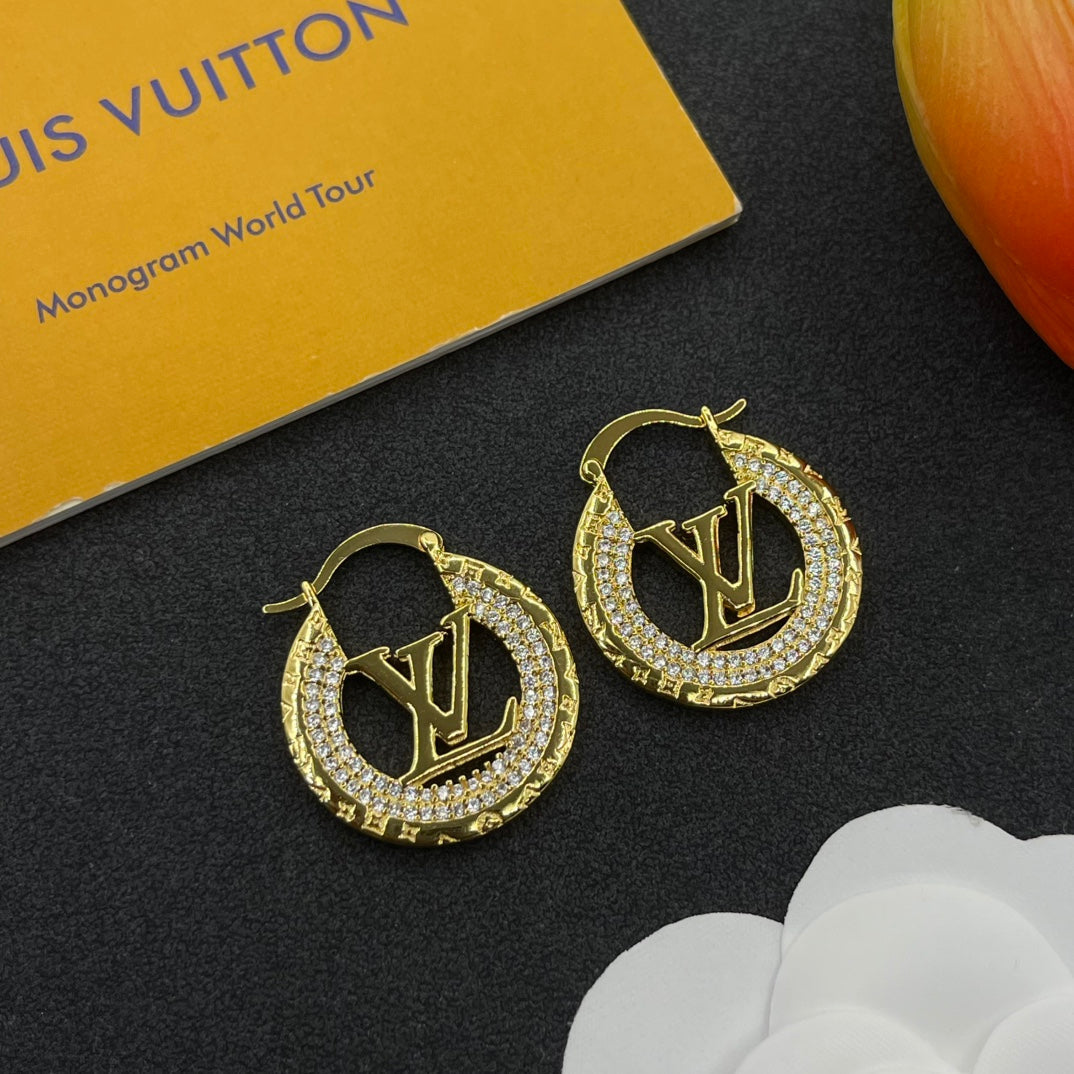 Diamond Alphabet Hoop Earrings