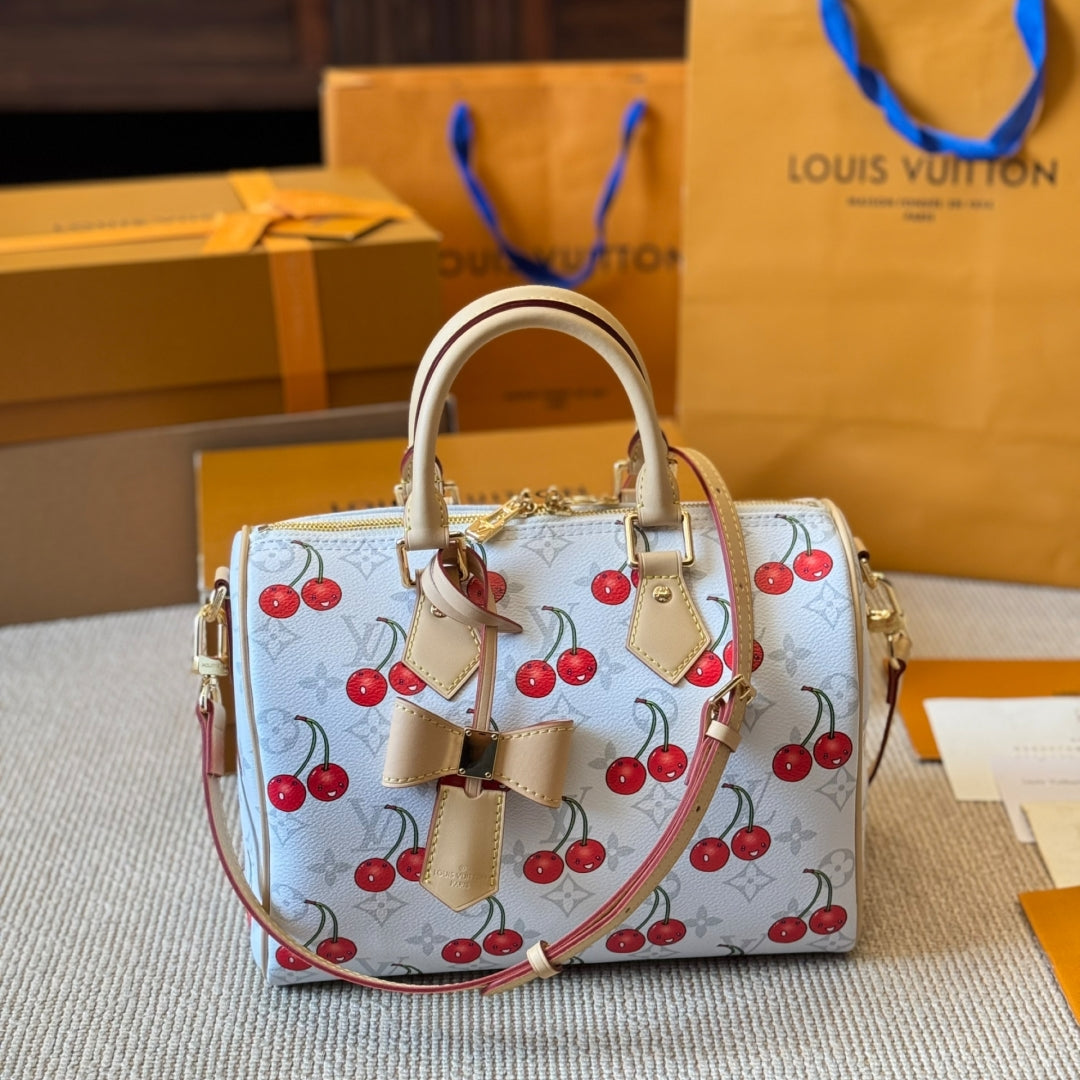 Cherry print white pillow bag