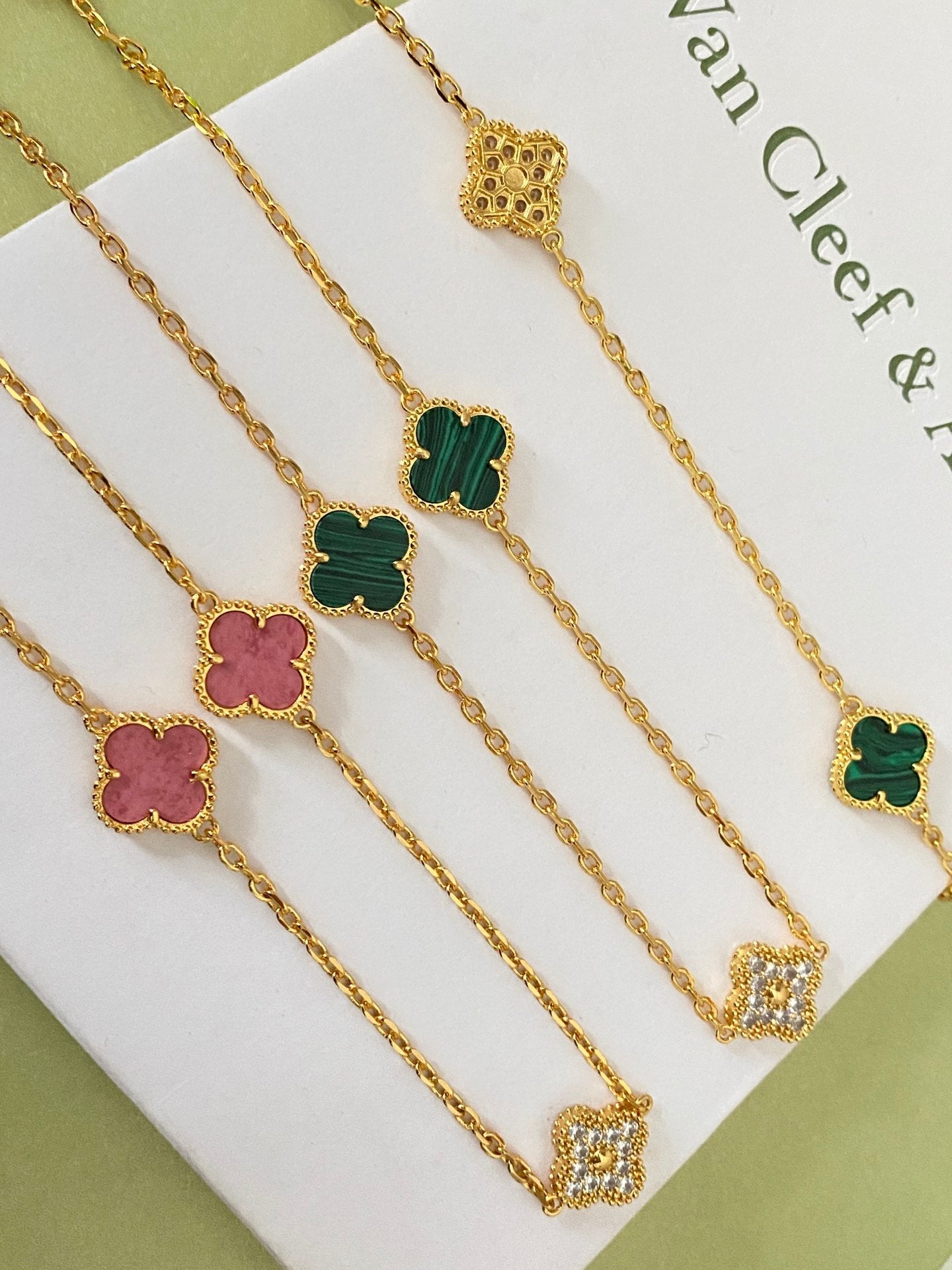 Four-leaf clover mother-of-pearl long necklace