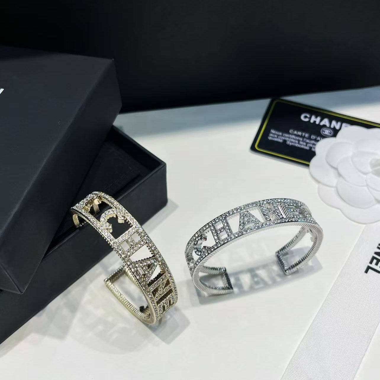 Half-circle bracelet with diamond engravings